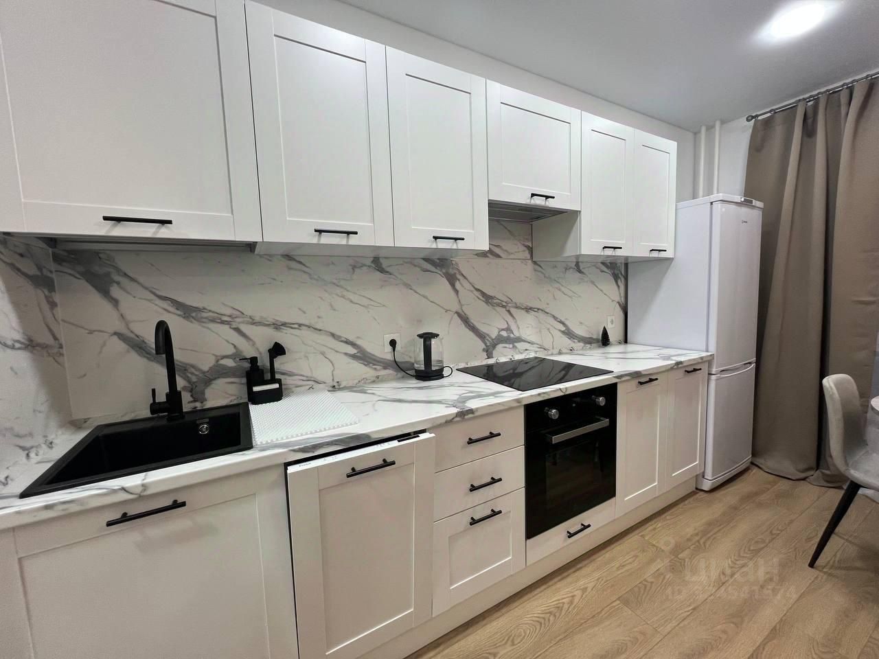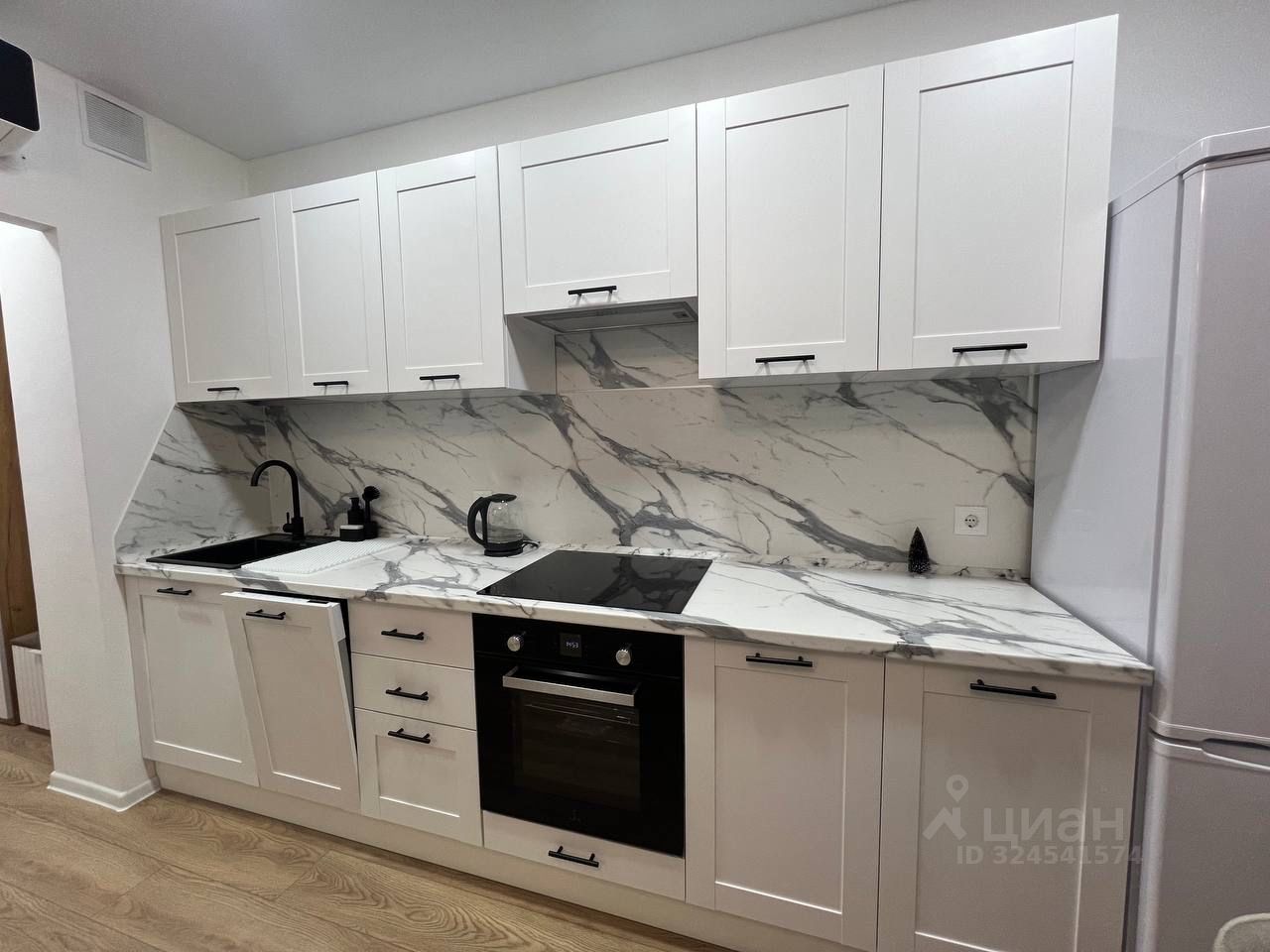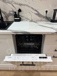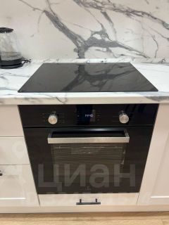 Встроенная кухня со всей необходимой техникой. Есть посудомоечная машина, большой холодильник, варочная панель и духовой шкаф.
