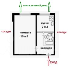 ПЛАНИРОВКА: изолированная комната, совмещенный санузел (полноценная ванна), без балкона.