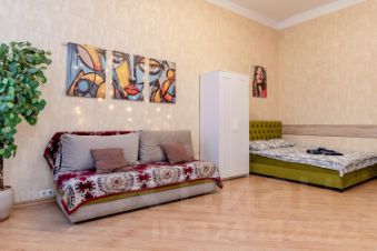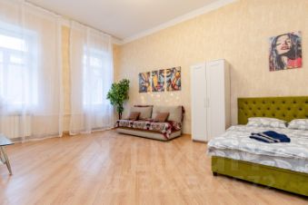 Спальные места: Большая двуспальная кровать и раскладной диван-кровать. Вместит до 4 человек.
