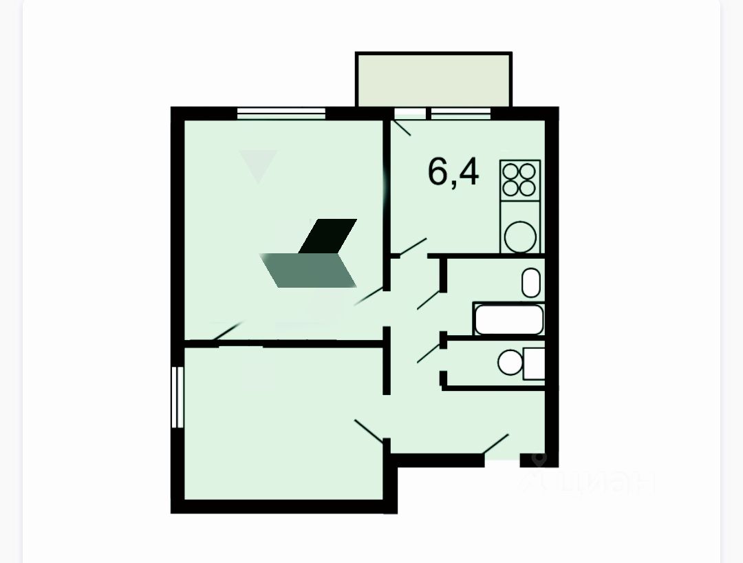 Квартира располагается на 12 этаже 12-этажного дома. В квартире 2 комнаты : 10 кв.м. и 14 кв.м. и из обеих комнат открывается прекрасный вид на парк Коломенское.