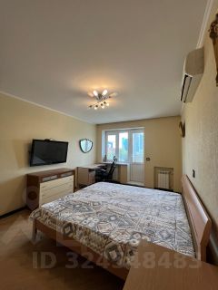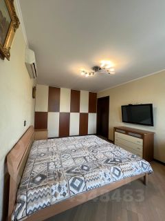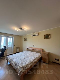 В большой спальне -2-х.сп кровать с ортопедическим матрасом, рабочий стол с креслом , комод , телевизор и во всю стену шкафы с разными системами хранения( полочками, ящиками и выдвижными штангами) , кондиционер.