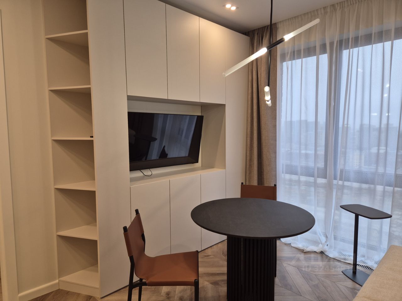 Квартира в сданном корпусе "Хамфри" в комплексе бизнес-класса "Павелецкая Сити". Довольно функциональная планировка предполагает кухню-гостиную, спальню, гардеробную и санузел. Панорамные окна. Выполнен дизайнерский ремонт, квартира полностью меблирована и укомплектована всей необходимой техникой.