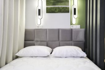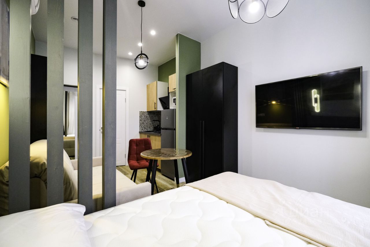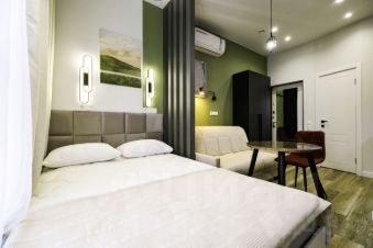 Квартира полностью готова к проживанию: в комнате и на кухне есть вся необходимая мебель. Для вашего комфорта установлены кондиционер, холодильник, телевизор и стиральная машина. Ванная комната оборудована современной душевой кабиной. Благодаря дизайнерскому ремонту и продуманной планировке, здесь можно насладиться уютом и комфортом.
