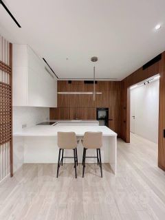 Все реализовано исключительно в рамках дизайн проекта. Планировка просчитана до мелочей. Задействовано все полезное пространство. Для комфортного микроклимата: система кондиционирования представлена фанкойлами с щелевыми решетками, обогрев полов с возможностью программирования.