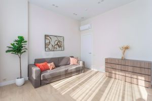 Апартамент с индивидуальным интерьерным решением в современном стиле, качественной отделкой, мебелью и техникой для жизни от ведущих брендов (Hotpoint Ariston):