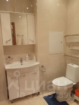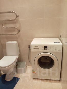 Просторная ванная, совмещенная с санузлом, там же находится стиральная машина.