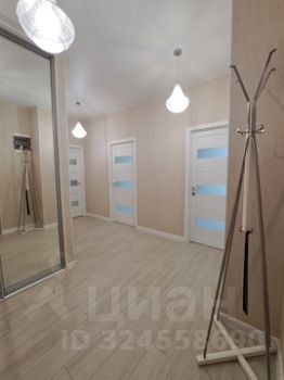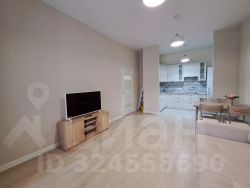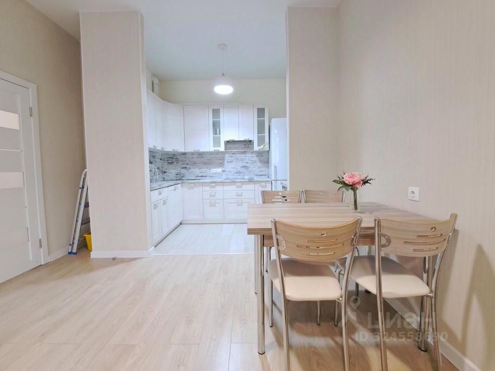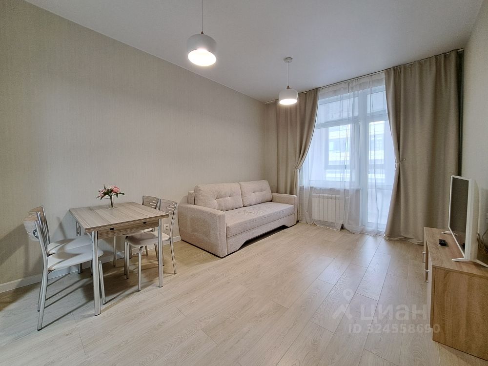 Квартира с ремонтом в ЖК "Символ". Евротрёшка. Две изолированные комнаты и гостиная-столовая с кухней, просторная лоджия около 5 м.кв. Квартира полностью меблирована. В одной комнате (спальня): 2-спальная кровать, две прикроватные тумбочки, туалетный столик, вместительный шкаф-купе; в другой (детская или кабинет) - диван раскладной, 3-створчатый шкаф-купе, письменный стол, полки. Кухня полностью оборудована встроенной мебелью и техникой (посудомоечная машинка, 2-камерный холодильник, СВЧ, варочная панель, духовой шкаф, вытяжка); в гостиной зоне обеденный стол со стульями, диван, телевизор на комоде. Два совмещенных санузла. В гостевом санузле установлена стиральная машинка. Большая квадратная прихожая со встроенным шкафом-купе для верхней одежды, сумок и обуви. Все окна в сторону внутреннего двора.