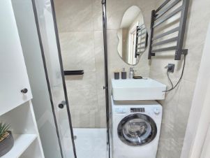 Уютная новая студия с большим окном и видом на тихую улицу. Высокие потолки, с широкой кроватью на втором уровне. В студии выполнена полностью новая отделка по индивидуальному дизайнерскому проекту. Есть двуспальный диван, телевизор, столик на две персоны, вместительный шкаф, встроенный кухонный гарнитур с варочной панелью на две конфорки, мойка, вытяжка с угольным фильтром, чайник, холодильник, микроволновая печь. В сан. узле стиральная машина, душевая кабина. Есть два лифта. Есть наземная парковка, спортивный зал для жителей в цокольном этаже, благоустроенная дворовая территория с ограждением по периметру и двойной системой контроля управления доступом (доступом через мобильное приложение). До метро 10 минут, рядом автобусная остановка, удобная транспортная доступность. До Кремля 10 километров. В шаговой доступности продуктовые магазины. В стоимость аренды включены коммунальные платежи и пользование спортивным залом. Расходы по счётчикам и за интернет (подключение при необходимости) оплачиваются отдельно. На территории комплекса есть ПВЗ Озон.