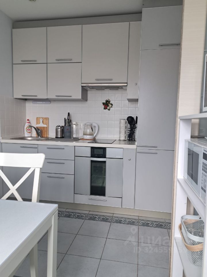 В квартире есть кондиционер. На кухне стоит встроенная техника. В наличие все необходимые бытовые приборы, небольшой телевизор.
