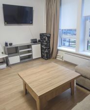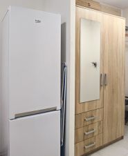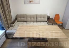 • В гостиной зоне угловой диван, много розеток, кондиционер, ТВ, роботпылесос (стол - трансформер и дополнительное спальное место);