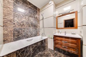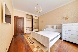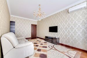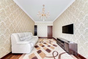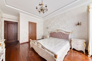 В квартире выполнена качественная отделка с применением дорогостоящих материалов, система кондиционирования в каждой комнате и кухне, тёплый пол, который делает дом ещё уютней, домофон с видеонаблюдением.