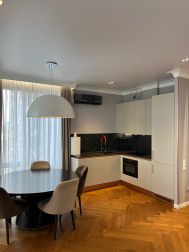 Длительный срок найма. С животными можно, но не с любыми, необходимо согласовывать с собственником. Дополнительно к ежемесячному платежу оплата расхода электроэнергии и воды по счетчикам (рассчитываются автоматически по смарт датчикам). Круглосуточная охрана. Есть два машино-места в подземном паркинге за отдельные деньги (одно семейное, другое одинарное).