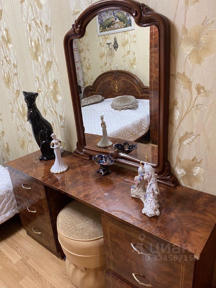 В комнате есть двухместная кровать, шкаф для одежды, комод с зеркалом.