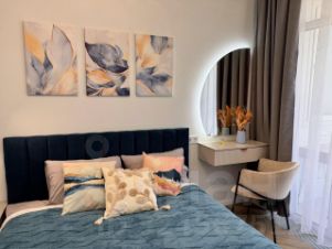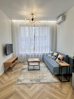 Сама квартира светлая и уютная, отремонтированная и обставленная со вкусом и любовью к своим будущим жильцам. Все новое, каждый метр площади используется и функционален! Мебель выполнена на заказ, очень много мест для хранения вещей: в коридоре гардеробная, большая кухня под потолок со множеством шкафчиков, в спальне 3-х метровый шкаф под потолок, кровать с подъемным механизмом и местами для хранения. Есть вся необходимая для жизни техника: кондиционеры в каждой комнате, двухметровый холодильник, полноразмерная посудомоечная машина, встраиваемый духовой шкаф и микроволновка, индукционная варочная панель, телевизор, стиральная машина с сушкой белья, пылесос, утюг, чайник.