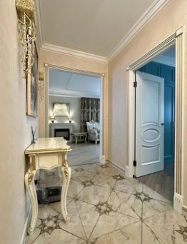 Прихожая: Сейфовая дверь, большой шкаф для верхней одежды, обувница, банкетка, зеркало, консоль.