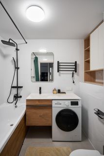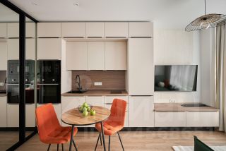 • Полный комплект бытовой техники: кондиционер, холодильник, варочная панель, духовой шкаф, микроволновая печь, стиральная машина, посудомоечная машина, вытяжка, телевизор, электрический чайник.
