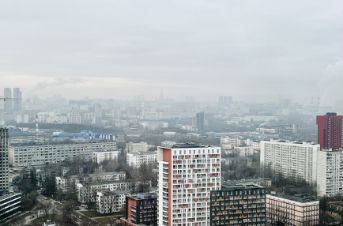 Квартира расположена на 33 этаже. Из окон открывается вид на МГУ и Москва-Сити.