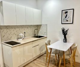 Видовая студия в долгосрочную аренду от собственника без комиссии. В квартире есть все, что нужно для жизни - большая двуспальная кровать, уютная кухня, симпатичная ванная и много мест для хранения.