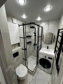 • Свежий ремонт ванной комнаты с современной сантехникой, душевой кабиной и тёплым полом