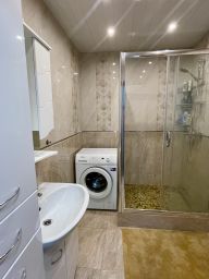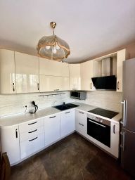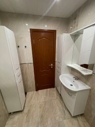 Две изолированные комнаты и небольшая комната с окном, которая может быть кабинетом, детской, гардеробной (см план). Квартира с качественным евроремонтом, меблирована, кондиционер в спальне, прекрасная кухня в светлых тонах оснащена техникой Bosch, холодильником Liebherr, с посудомоечной машиной Bosch, фильтром для воды. Теплые полы в коридоре и на кухне.