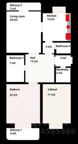 Трехкомнатная квартира меблирована. Два полных санузла. Комнаты изолированные. Гардеробная комната. В гостиной есть два прохода: в коридор и на кухню. Установлены кондиционеры - 2