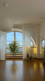 Из мебели: кухня - кожаный диван, кухонный стол, встроенная техника. Фильтр для воды, холодильник, посудомоечная, вытяжка, шкафы, духовой шкаф, микроволновка, кофемашина рожковая, 2 робота-пылесоса и один пылесос Керхер, посуда, чайник, шторы.