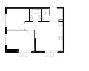 Современная планировка: 2 изолированные комнаты и просторная кухня-гостиная.
