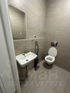 Рядом расположен гостевой санузел с туалетом и компактной раковиной. Он выполнен в единой стилистике с основным, но более лаконично, что делает его предельно удобным для гостей и в повседневной жизни.