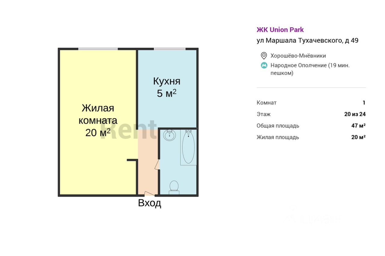 В комплексе "Union Park" предлагается однокомнатная квартира. В комнате есть все, что необходимо для комфортного проживания - кровать и угловой диван, шкаф для гардероба, сплит-система. Кухня оснащена вместительным гарнитуром, духовой и микроволновой печами, холодильником. В ванной комнате - джакузи.