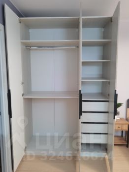 Шкаф с 2 перекладинами для вешалок, полками и выдвижными ящиками на доводчиках
