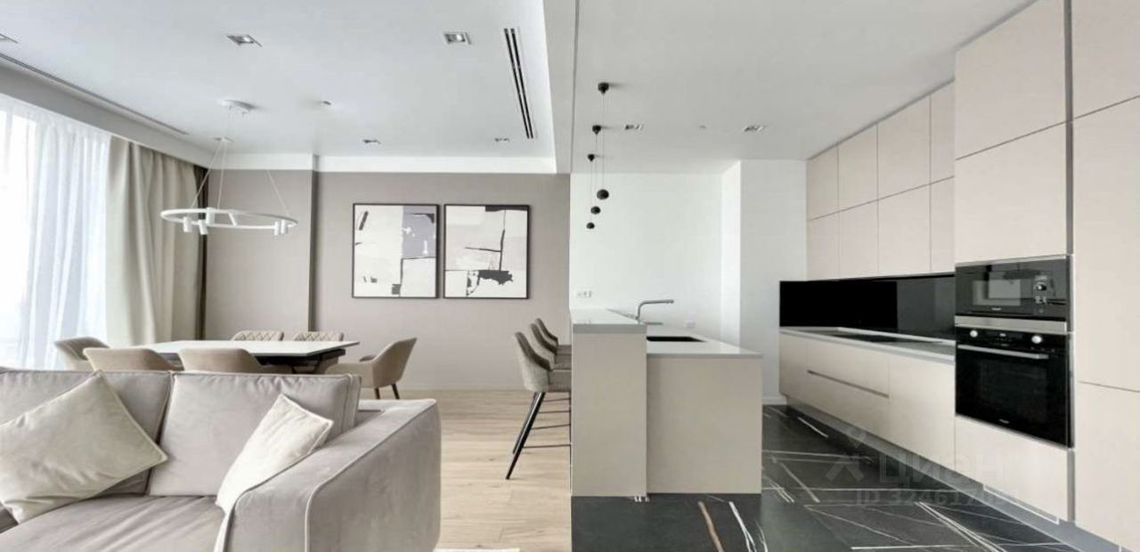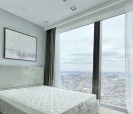 Сдается в аренду просторная трехкомнатная квартира площадью 110 кв. м в престижном районе Москва-Сити. Апартаменты расположены на 75-м этаже 79-этажного дома, откуда открываются захватывающие виды на город. До метро всего 2 минуты пешком, что делает это предложение особенно привлекательным.