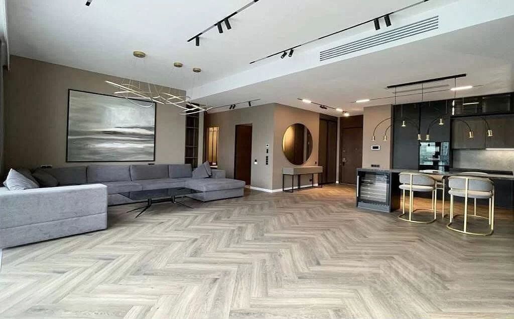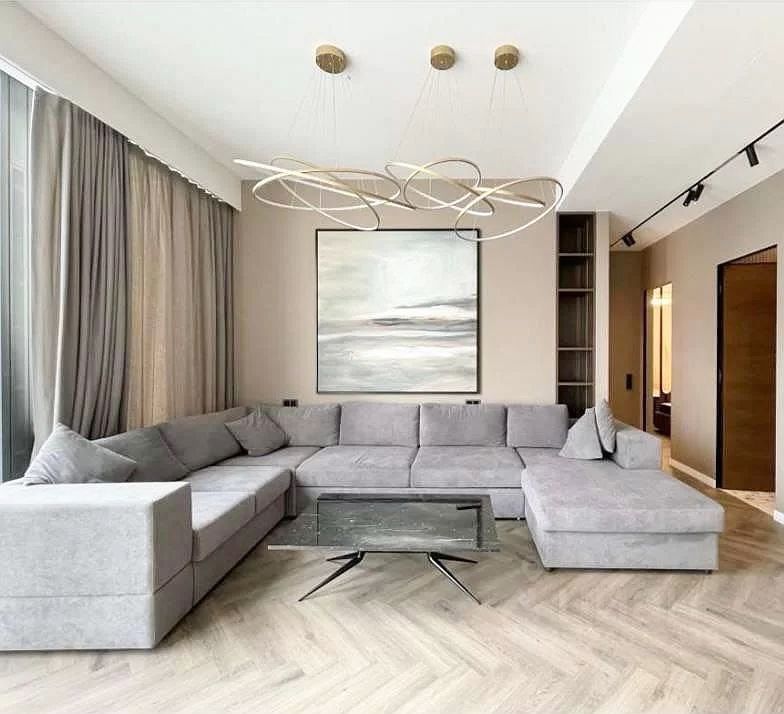 Апартаменты оформлены в дизайнерском стиле и полностью готовы к проживанию. В квартире есть все необходимое: удобная мебель на кухне и в комнатах, современная бытовая техника, включая кондиционер, холодильник, посудомоечную и стиральную машины, а также телевизор. Планировка включает в себя три комнаты и два санузла — один совмещенный и один отдельный, что добавляет удобства в повседневной жизни. В ванной комнате установлены как ванна, так и душевая кабина, поэтому можно выбрать, как начать свой день.