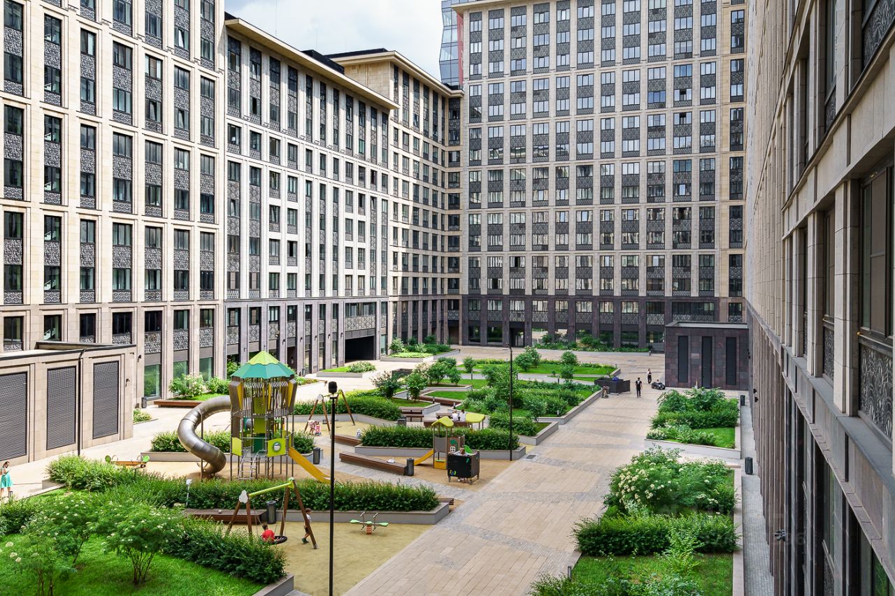 Вид из окон во внутренний двор. По внешней стороне дома на первых этажах, а также в соседнем бизнес центре, есть вся необходимая инфраструктура. В пешей доступности ТРЦ Авиапарк, 2 станции метро (Динамо, ЦСКА).