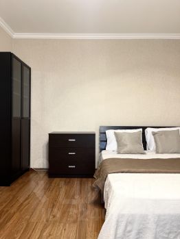 Квартира укомплектована хорошей техникой: духовой шкаф, варочная поверхность, вытяжка, холодильник, микроволновая печь. Так же есть блендер, чайник, пылесос, утюг, гладильная доска, установлен кондиционер, стиральная машина.