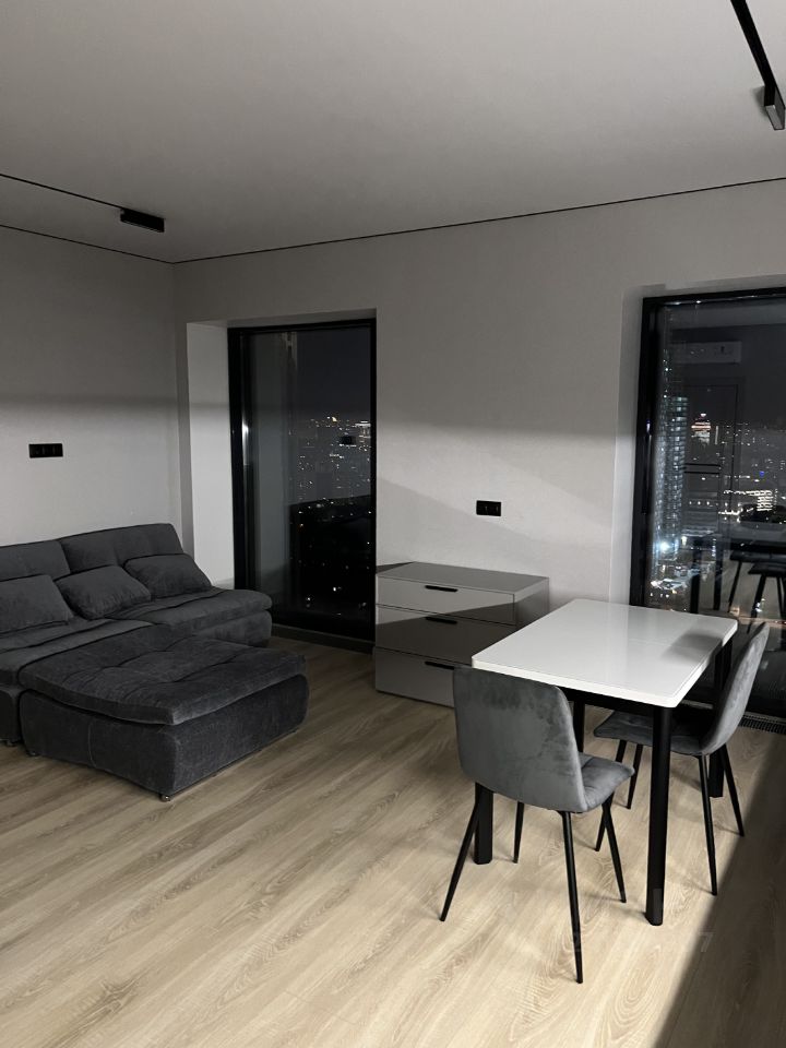 В квартире современный евроремонт, просторная кухня-гостиная, две комнаты, два санузла. Есть всё для комфортного проживания: необходимая мебель, посудомоечная машина, стирально-сушильная машина, кондиционер, стабильное интернет-соединение. В мастер-спальне — большая двуспальная кровать, санузел с ванной.
