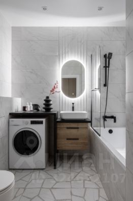 Основная ванная комната - просторная, с ванной, также есть стиральная машинка с функцией сушки.