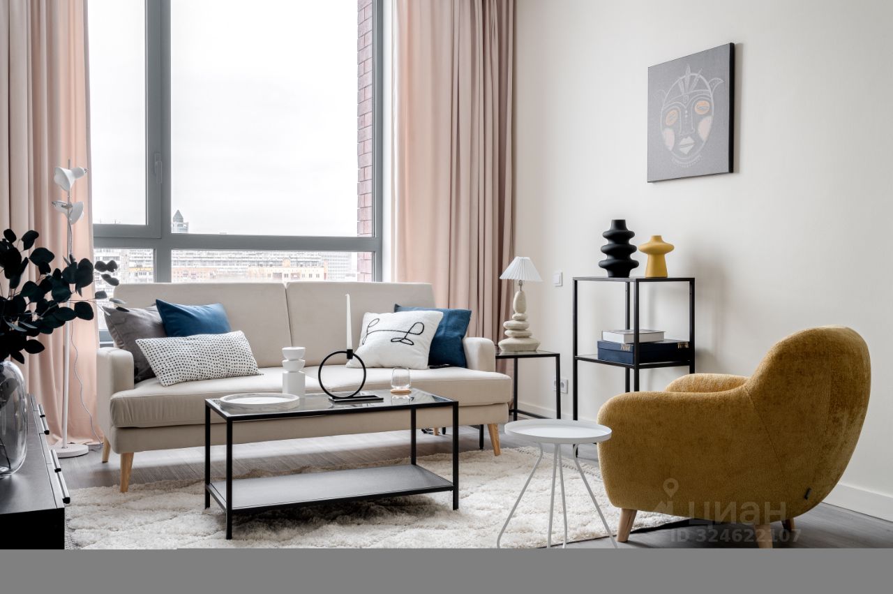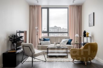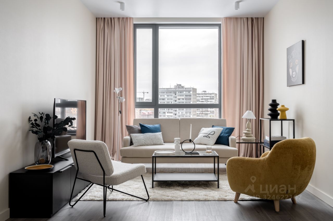 Дизайн квартиры выполнен в спокойных дорогих тонах. Просторная кухня-гостиная 25 кв.м., в которой приятно принимать гостей и проводить время с близкими. В гостиной большой смарт телевизор с диагональю 55 дюймов, с панорамных окон открывается шикарный вид на Москву.