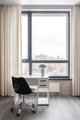 В третьей комнате располагается удобный диван-кровать и рабочий стол.