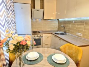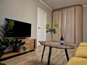 Просторная 1к.кв. квартира в сердце столицы. Современная и супер уютная, в комфортных светлых тонах! Окна выходят на тихую зеленую улицу.
