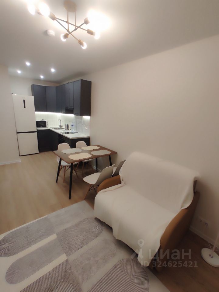Планировка: просторная кухня-гостиная+ спальня.Сан.узел совместный,со встроенными шкафами.В квартире сделан качественный ремонт.В наличии необходимая современная мебель и бытовая техника.(телевизор уже установили!,на фото нет.) Вся обстановка в кв.новая! Интернет и ТВ проведены.Видеодомофон с видом на подъезд и на этаж.Кв.теплая.На этаже три лифта.