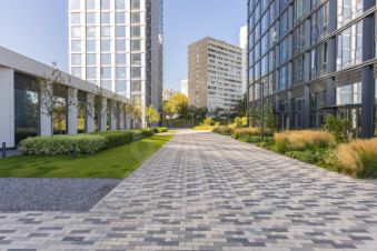 В стилобате комплекса расположены лаунж, коворкинг, фитнес, детский центр развития на 90 мест, кафе и супермаркет. В подземной части оборудован двухуровневый паркинг на 634 места с автомойкой. Территория закрыта для посторонних. Проход в здание осуществляется по биометрической системе доступа со считыванием отпечатков пальцев, а въезд в паркинг по автоматическому считыванию номеров. Во дворах предусмотрены игровые площадки с батутами, качелями и горками, спроектирован собственный сад, где устроены прогулочные дорожки, амфитеатр и зона воркаута. Отдельно предусмотрена зона барбекю. Проект благоустройства включает площадки для йоги, места для выгула собак и велодорожку с выездом к реке. На всей территории wi-fi-покрытие и места с usb-зарядками для ноутбуков.