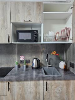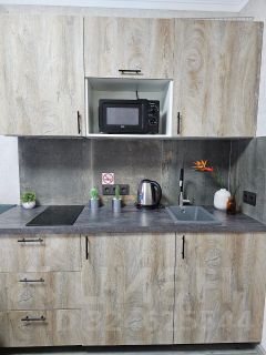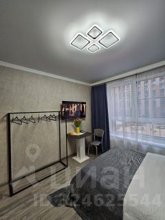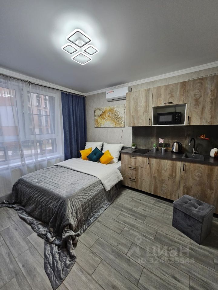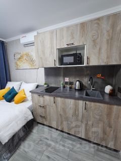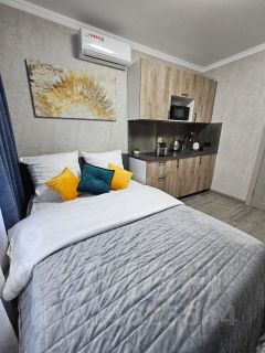 В квартире выполнен евроремонт, поэтому все выглядит свежо и современно. Пространство студии обставлено необходимой мебелью, что позволяет сразу заехать и жить. В наличии вся техника: кондиционер, холодильник и стиральная машины, а также телевизор. Санузел совмещенный, оборудован современной душевой кабиной.