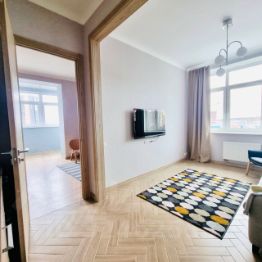 Две просторные комнаты полностью меблированы, комфортная двуспальная кровать, большой диван, много мест для хранения.