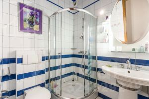 Функциональная планировка квартиры: просторная гостиная с обеденной зоной, кухня, две спальни, жилая комната (можно использовать как спальню, детскую или кабинет), 2 совмещенных санузла с ванной и душевой кабиной, прихожая. Квартира без мебели, укомплектована необходимой бытовой техникой.
