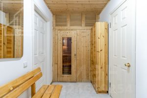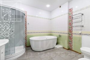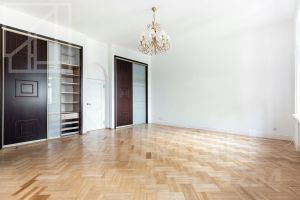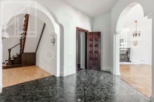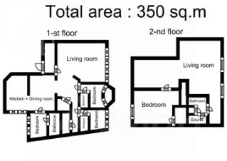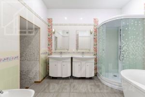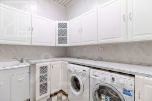 Планировка: просторная гостиная, кухня с обеденной зоной, пять жилых комнат (можно использовать как спальню или кабинет), пять совмещенных санузлов с ванной и душевой кабиной, сауна, гостевой туалет, постирочная комната. Квартира без мебели, укомплектована необходимой бытовой техникой. Высокие потолки 3,7м.