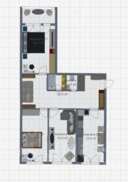 - 3 раздельные комнаты