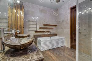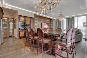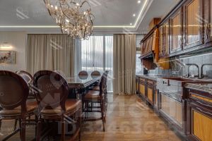 В центре квартиры расположена великолепная кухня-гостиная, выполненная в гармоничном сочетании натуральных и элитарных материалов.
