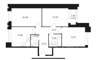 - 3 просторных, светлых комнаты (16,5м2, 13,5м2, 14,3м2 + 3м2 лоджия);