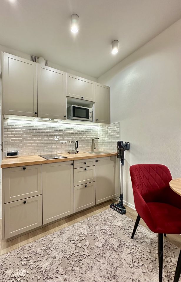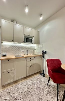 Студия выполнена в современном стиле и полностью готова к проживанию. В квартире есть всё необходимое для вашего комфорта: диван-кровать с ортопедическим матрасом, вместительные шкафы для одежды, бытовая техника- холодильник и стиральная машина, также имеется набор посуды, очиститель воздуха, микроволновая печь, электрический чайник, пылесос, электрическая плита, кондиционер, многофункциональная мини-печь, сушилка для белья.
