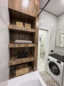Полностью меблирована и укомплектована бытовой техникой (холодильник, стиральная машина, плита, духовой шкаф, посудомоечная машина). В каждой комнате установлен кондиционер